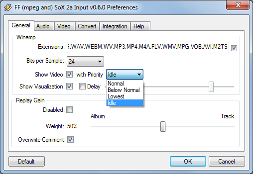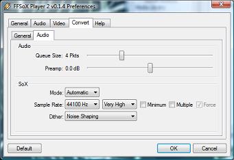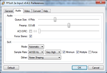 | Queue Size: | how many FFmpeg audio packets the plugin shoud cache |