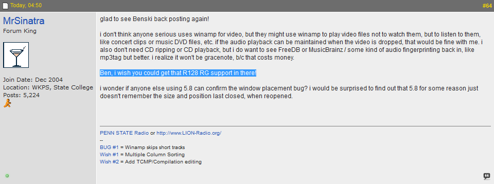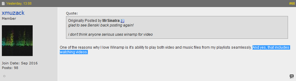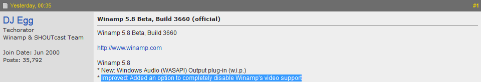 | FF (mpeg and) SoX Input at WA Forum: | http://forums.winamp.com/showthread.php?t=319968 (discontinued) | |