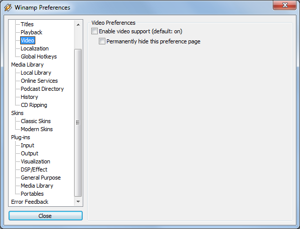 | Extensions: | a semicolon separated list of extensions for which Winamp should use this plugin (including a switch for disabling/enabling the plugin) |