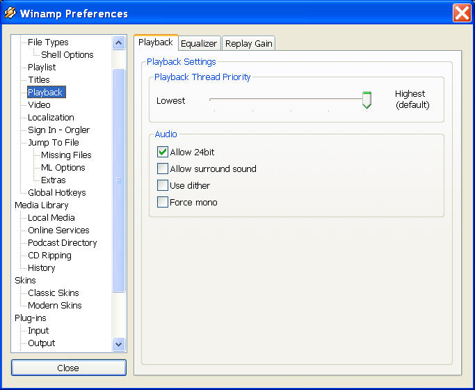 A main objective of the solution proposed here (the Winamp plug-in is only part of it) is to minimize any distortion of the audio signal, or to avoid it at all, if possible. This contradicts the second main objective to provide replay gain, unfortunately implying digital sound processing (DSP), i.e. altering the audio signal by intention in the digital domain. The compromise is as follows: