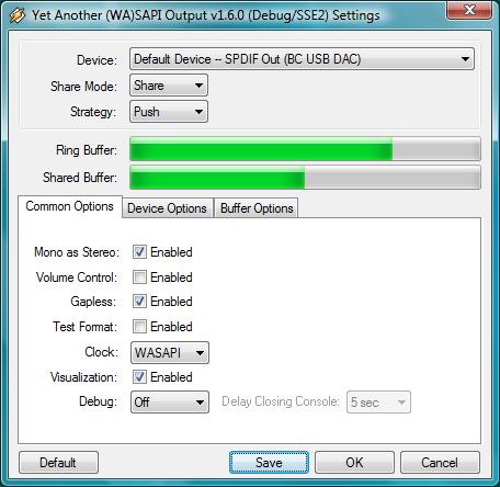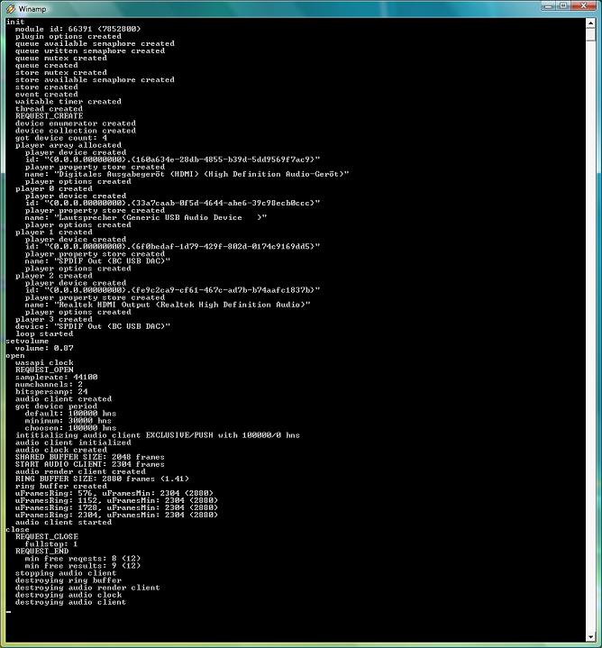 So I'm now in a position where if I were to make my own WASAPI output plug-in, I'm almost certain he'd claim I was just plagiarising his work even if it was written from scratch as I've said that I'd already had a look at the available source code for his plug-in.Darren, it's not your WASAPI plug-in, it's mine. Even with that little changes you've made you've perfectly demonstrated that you don't have the slightest idea on how this (my) plug-in is supposed to work and you've managed introducing a major bug into the configuration.